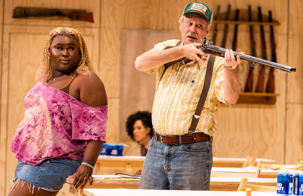 The show is set on a minimalist stage; essentially no sets are used, and few props other than some picnic tables, crockpots, beers, and guns. Costumes are fairly contemporary-Western as well, without much concern about seeming early 1900s period appropriate. The songs are harder-edged, louder, and more aggressive.