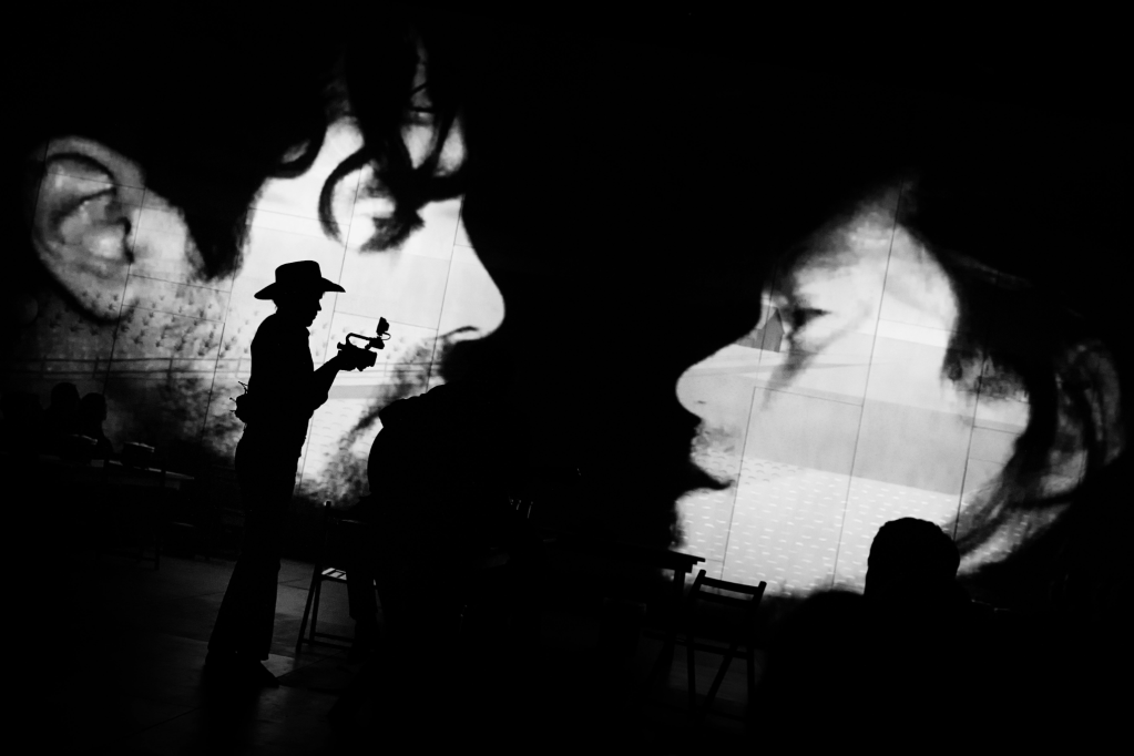 One of my favorite moments is a completely pitch black performance of “Pore Jud is Daid”, the song in which Curly tells Jud about his hypothetical suicide and the town’s sarcastically upset reaction to it. Of course, this show brings to the forefront the notion of Curly bullying Jud, trying to convince him that maybe he’d be loved more in death than in life. An infrared camera is used in the sequence so that close-ups of Curry and Jud’s faces are projected onto the wall behind them (again, with the actors in pitch black). During the extremely intimate song, the camera lingers on Jud’s face, so that we catch his hate-filled yet self-loathing reaction to the hurtful words Curly is singing.